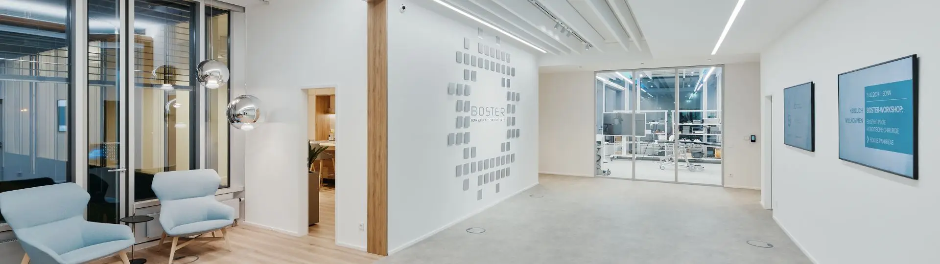 BOSTER ist ebenso Forschungs-, Ausbildungs- und Trainings-Zentrum als auch Show-Room, Event- und Community Location. Als lebendiges Ökosystem mit einer vielfältigen Gemeinschaft aus Patient*innen, Anwender*innen, Lehrenden und Lernenden, Wissenschaftler*innen, Forscher*innen sowie Industriepartner*innen, fördert BOSTER Projekte und Initiativen zur Entwicklung und Implementierung modernster digitaler chirurgischer Technologien. Zentrale Forschungsgebiete sind die Robotik, virtuelle und erweiterte Realitäten (VR/AR) sowie künstliche Intelligenz (KI).